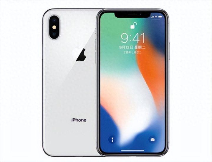 iPhone X手机 / 展示白色iPhone X正反两面,带刘海屏