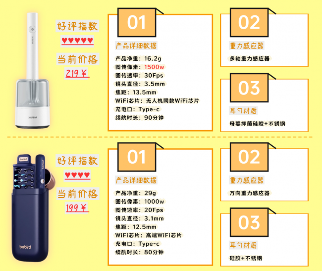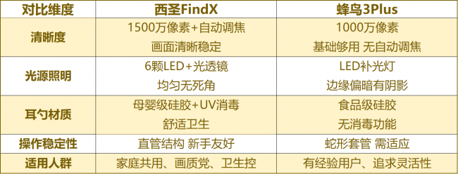 宽泛我方计帐耳说念、给孩子老东说念主照看,便携又好用的可视挖耳勺基本是刚需。此次径直选了市面上口碑和销量皆可以的两款——XISEM西圣FindX、bebird蜂鸟3Plus,从画面清爽度、光源亮度、耳勺材质三个最影响使用体验的维度实测,不夸大不拉踩,哪款更值得买,看完就有谜底。