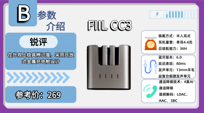 音质方面搭载8mm动圈单位,低频饱胀有劲,中频东谈主声当然,得当流行、民谣等曲风。领略力和乐器离别度一般,但足以得志日常听歌需求。蓝牙5.3邻接沉稳,游戏和不雅影蔓延感较低。续航方面,耳机+充电仓可提供约40小时使用,同期支捏快充,充电10分钟可播放约3小时,但在永劫辰高音量下,高频细节泄漏略显不及。